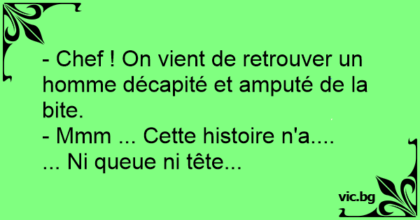 - Chef ! On vient de retrouver un homme décapité et amputé de la bite.