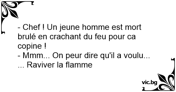 - Chef ! Un jeune homme est mort brulé en crachant du feu pour ca copine !