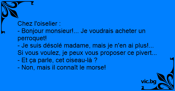 Chez l'oiselier : - Bonjour...