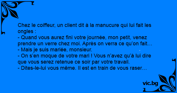 Chez le coiffeur, un client dit à la manucure qui lui fait les ongles :