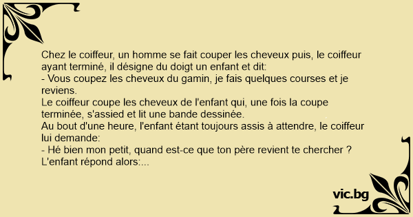 Au bout d'une heure, l'enfant étant toujours assis à attendre, le coiffeur lui demande: