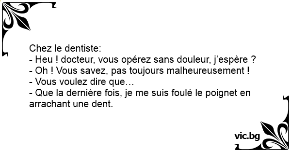 - Que la dernière fois, je me suis foulé le poignet en arrachant une dent.
