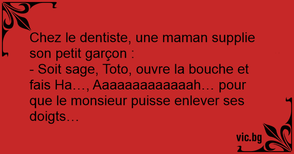 - Soit sage, Toto, ouvre la bouche et fais Ha…, Aaaaaaaaaaaaah… pour que le monsieur puisse enlever ses doigts…