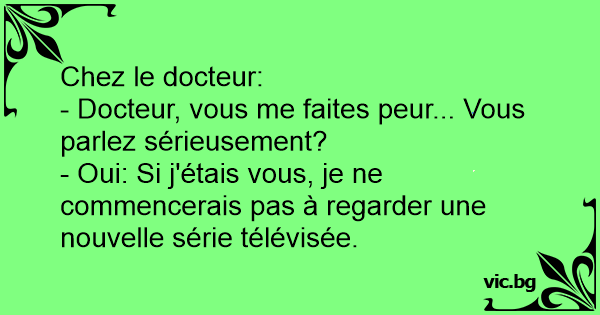 - Docteur, vous me faites peur... Vous parlez sérieusement?