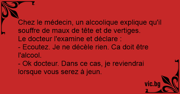 Chez le médecin, un alcoolique explique qu'il souffre de maux de tête et de vertiges.