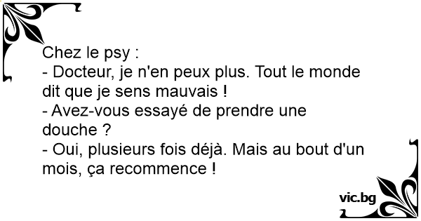 - Docteur, je n'en peux plus. Tout le monde dit que je sens mauvais !