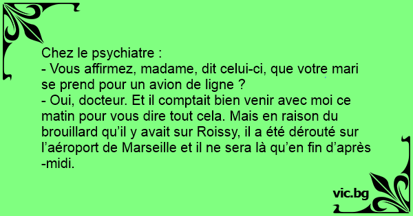 - Vous affirmez, madame, dit celui-ci, que votre mari se prend pour un avion de ligne ?