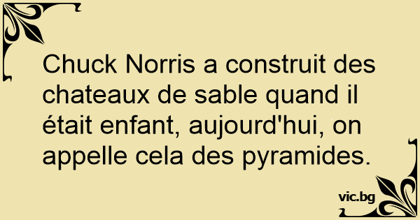Chuck Norris a construit des chateaux de sable quand il était enfant, aujourd'hui, on appelle cela des pyramides.