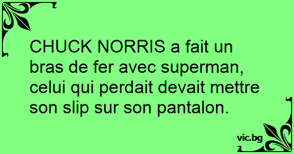 CHUCK NORRIS a fait un bras de fer avec superman, celui qui perdait devait mettre son slip sur son pantalon.