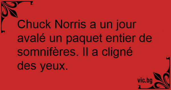 Chuck Norris a un jour avalé un paquet entier de somnifères. Il a cligné des yeux.