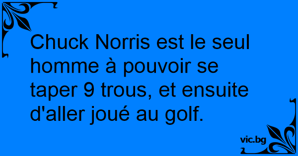 Chuck Norris est le seul homme à pouvoir se taper 9 trous, et ensuite d'aller joué au golf.