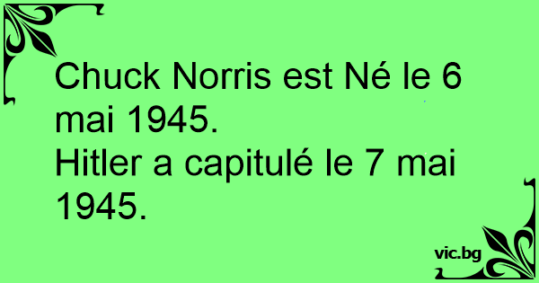Chuck Norris naît le 6 mai 1945 l'Empire nazi chute le 7 mai 1945 Coïncidence ? Je ne pense pas