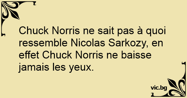 Chuck Norris ne sait pas à quoi ressemble Nicolas Sarkozy, en effet Chuck Norris ne baisse jamais les yeux.