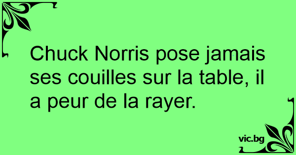 Chuck Norris pose jamais ses couilles sur la table, il a peur de la rayer.