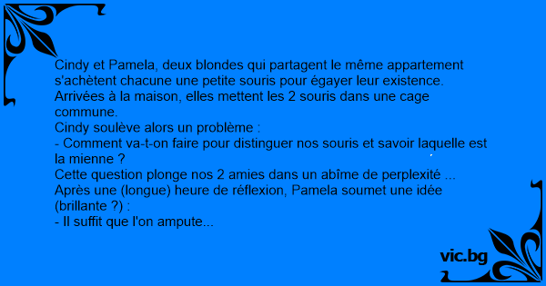 Cindy et Pamela, deux blondes qui partagent le même appartement s'achètent chacune une petite souris pour égayer leur existence.