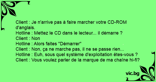 Client : Je n'arrive pas à faire marcher votre CD-ROM d'anglais.