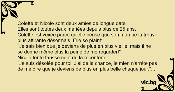 "Je suis désolée pour toi. J'ai de la chance, le mien n'arrête pas de me dire que je deviens de plus en plus belle chaque jour."