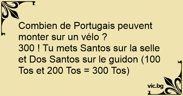 300 ! Tu mets Santos sur la selle et Dos Santos sur le guidon (100 Tos et 200 Tos = 300 Tos)