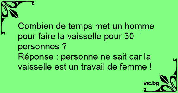 Combien de temps met un homme pour faire la vaisselle pour 30 personnes ?