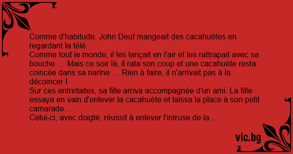 Comme d'habitude, John Deuf mangeait des cacahuètes en regardant la télé.