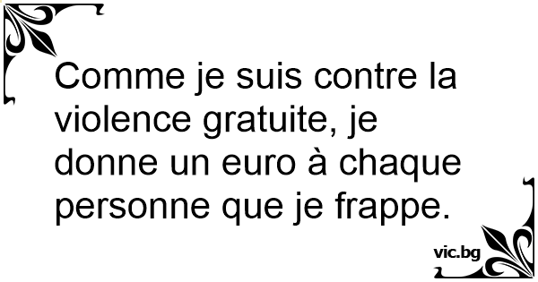 Comme je suis contre la violence gratuite, je donne un euro à chaque personne que je frappe.