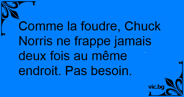 Comme la foudre, Chuck Norris ne frappe jamais deux fois au même endroit. Pas besoin.