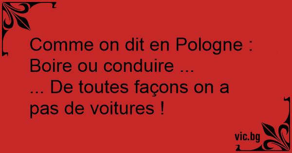 Comme on dit en Pologne : Boire ou conduire ...