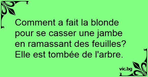 Comment a fait la blonde pour se casser une jambe en ramassant des feuilles? Elle est tombée de l'arbre.