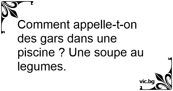 Comment appelle-t-on des gars dans une piscine ? Une soupe au legumes.
