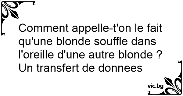 Comment appelle-t'on le fait qu'une blonde souffle dans l'oreille d'une autre blonde ? Un transfert de donnees
