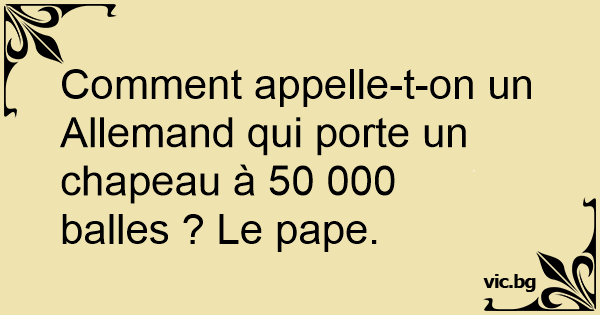 Comment appelle-t-on un Allemand qui porte un chapeau à 50 000 balles ? Le pape.