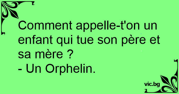 Comment appelle-t'on un enfant qui tue son père et sa mère ?<br />- Un Orphelin.