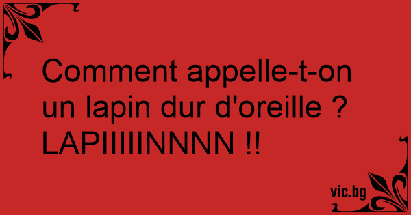 Comment appelle-t-on un lapin dur d'oreille ? LAPIIIIINNNN !!