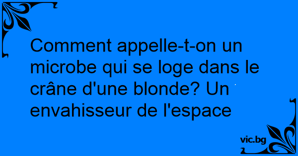 Comment appelle-t-on un microbe qui se loge dans le crâne d'une blonde? Un envahisseur de l'espace