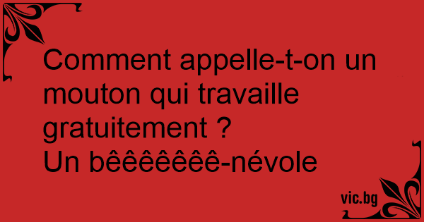 Comment appelle-t-on un mouton qui travaille gratuitement ?<br />Un bêêêêêêê-névole