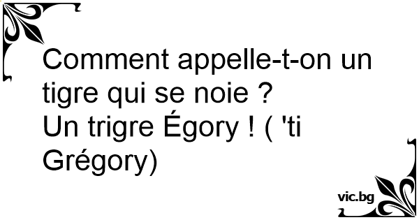 Български English Deutsch Español Русский Comment appelle-t-on un tigre qui se noie ? Un trigre Égory ! ( 'ti Grégory) Italiano Ελληνικά Македонски Türkçe Українська Português Polski Svenska Nederlands Dansk Norsk Suomi Magyar Româna Čeština Lietuvių Latviešu Hrvatski
