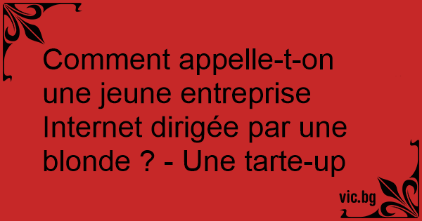 Comment appelle-t-on une jeune entreprise Internet dirigée par une blonde ? - Une tarte-up