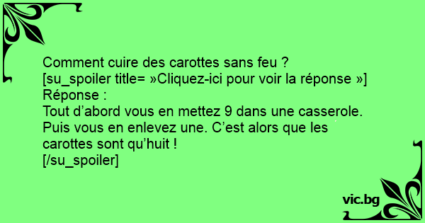 Tout d’abord vous en mettez 9 dans une casserole. Puis vous en enlevez une. C’est alors que les carottes sont qu’huit !