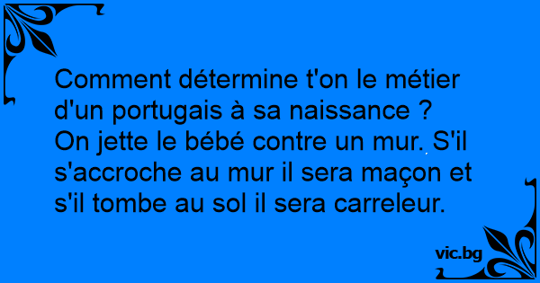 On jette le bébé contre un mur. S'il s'accroche au mur il sera maçon et s'il tombe au sol il sera carreleur.