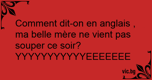 Comment dit-on en anglais , ma belle mère ne vient pas souper ce soir? YYYYYYYYYYYEEEEEEEEEESSSSSSSSSSS