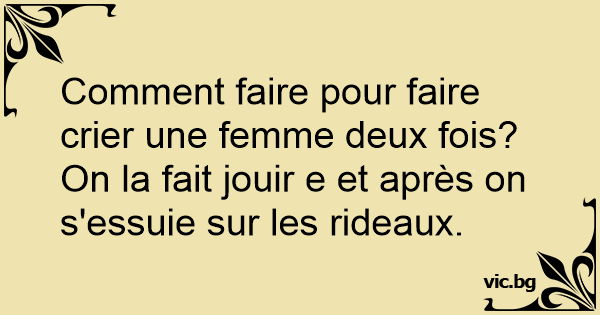 Comment faire pour faire crier une femme deux fois? On la fait jouir e et après on s'essuie sur les rideaux.