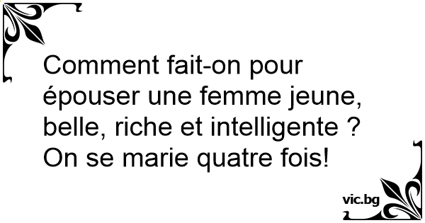 Comment fait-on pour épouser une femme jeune, belle, riche et intelligente ? On se marie quatre fois!