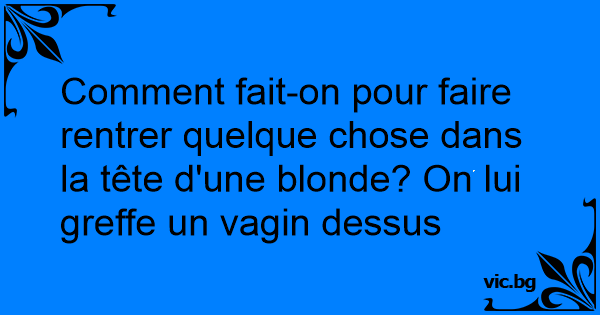 Comment fait-on pour faire rentrer quelque chose dans la tête d'une blonde? On lui greffe un vagin dessus