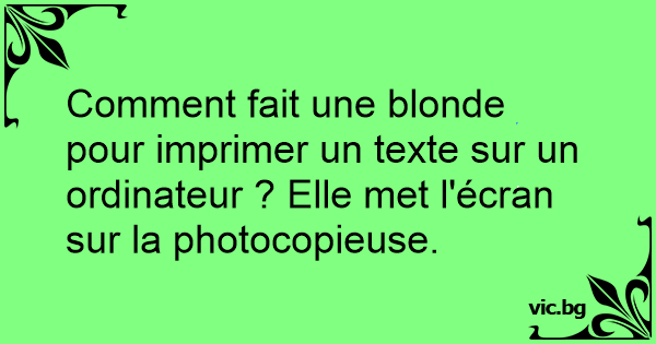 Comment fait une blonde pour imprimer un texte sur un ordinateur ? Elle met l'écran sur la photocopieuse.