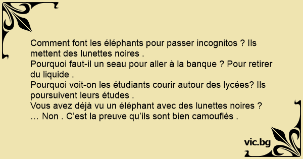 Comment font les éléphants pour passer incognitos ? Ils mettent des lunettes noires .