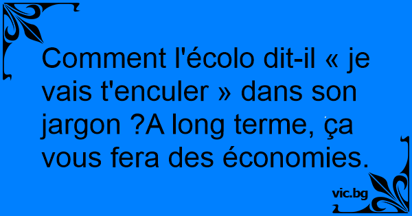 Comment l'écolo dit-il « je vais t'enculer » dans son jargon ?A long terme, ça vous fera des économies.