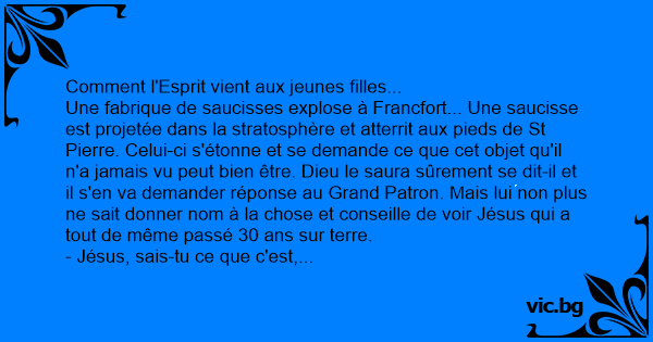 - Jésus, sais-tu ce que c'est, demande St Pierre en lui présentant la saucisse ?
