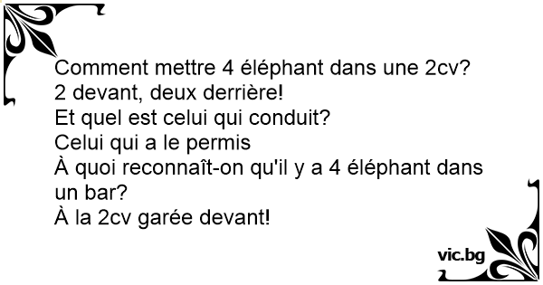 Comment mettre 4 éléphant dans une 2cv?