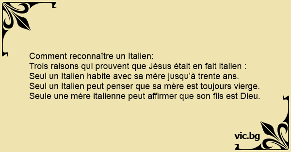 Seul un Italien peut penser que sa mère est toujours vierge.