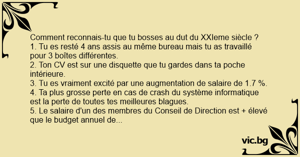 Comment reconnais-tu que tu bosses au dut du XXIeme siècle ?